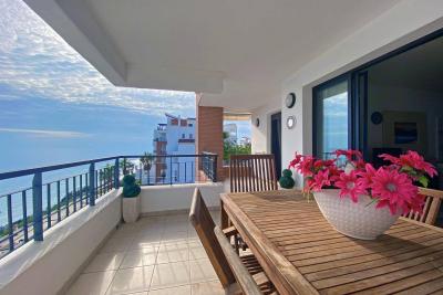 Dieses Anwesen bietet einen hervorragenden Panoramablick auf das Meer von seinen 2 nach Süden ausgerichteten Terrassen (23 m2), 3 Doppelzimmern mit Einbauschränken, eines davon mit Balkon, zwei Badezimmern (eines davon en suite), separater voll ausgestatteter Küche und hellem, offenem Wohn- und Esszimmer führt auf die sonnige Terrasse, wo Sie wundervolle Sonnenuntergänge und Sonnenaufgänge genießen können. Von dieser Unterkunft aus können Sie auch den Klang des Meeres und der Wellen sowie die hervorragende Aussicht auf Nerja genießen.