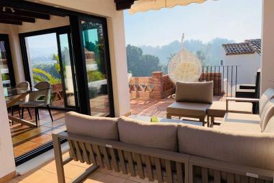 Es besteht aus 3 Doppelschlafzimmern mit Einbauschränken, 2 Bädern, eines davon en suite und mit Terrasse, unabhängiger Küche, offenem Wohn- und Essbereich mit Zugang zu großen Terrassen auf 2 Ebenen mit Grillplatz und einem privaten Pool.