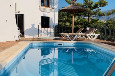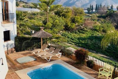 Charmante Villa mit privatem Pool in La Exotica, einer ruhigen Wohngegend in Nerja, nur wenige Autominuten vom Stadtzentrum, den Stränden und Balcón de Europa.