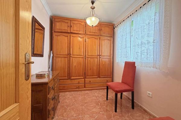 The property comprises a welcoming entrance hall with a built-in wardrobe, a fully renovated independent kitchen, a main bedroom and a second interior bedroom, perfect as a guest room, office, or multifunctional space. It also features a fully renovated bathroom and a bright living-dining room with pleasant mountain views, providing a sense of space and comfort.