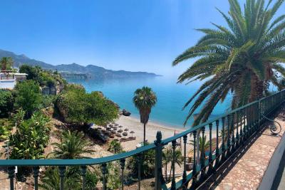 Ático dúplex con orientación sur en primera línea de playa con espectaculares vistas al mar, al Faro de Torrox y a la piscina...