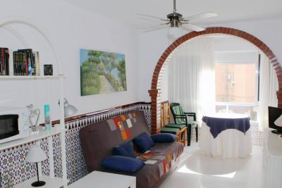 Apartamento con vistas al mar en 1ª línea de playa y junto al paseo marítimo de Torrox Costa cerca de todos los servicios (tiendas, supermercados, souvenirs, bares, chiringuitos...).