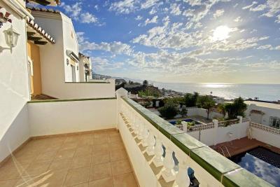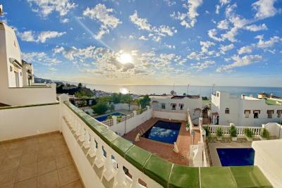 Casa adosada con orientación sur y vistas al mar en una urbanización muy tranquila y cerca del mar en El Peñoncillo (Torrox Costa). A tan solo unos minutos en coche del paseo marítimo, tiendas, supermercados y a 10 minutos en coche de Nerja.