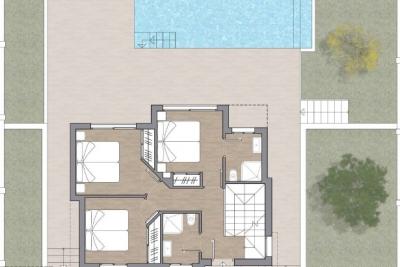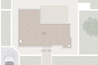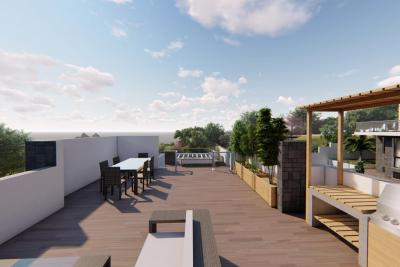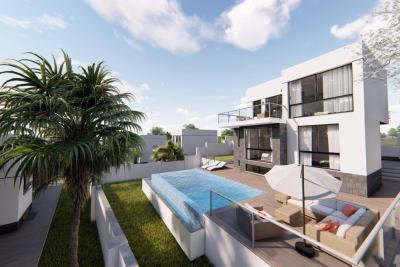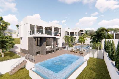 Al poseer 390 m2 de parcela, la villa goza de grandes zonas verdes que rodean la vivienda, contando con una amplia zona de aparcamiento en la zona trasera de la vivienda, ademas la vivienda tiene una gran terraza con acceso directo desde el salón y otra gran terraza en la parte superior de la vivienda de 100 m2 en la que se puede disfrutar de buenas vistas al mar y la montaña.