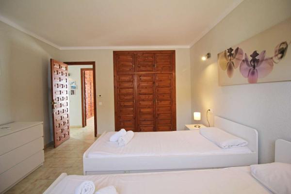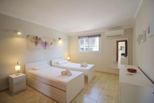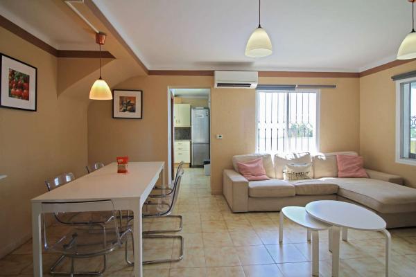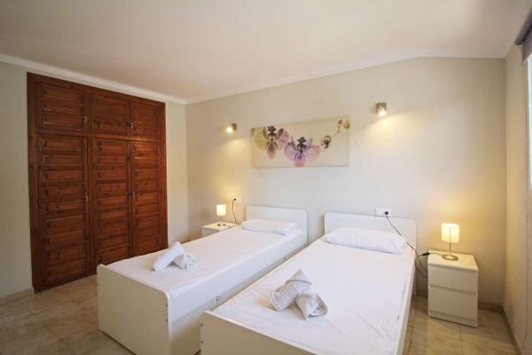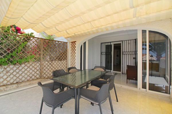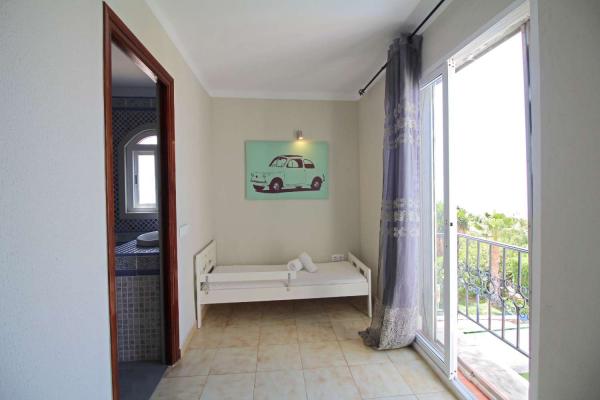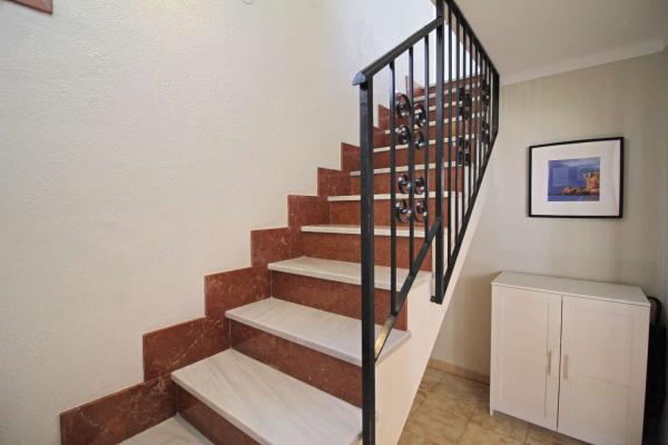 Op de bovenverdieping bevinden zich twee dubbele slaapkamers met inbouwkasten, een ruime badkamer met zowel douche als bad en een privéterras dat vanuit de master bedroom toegankelijk is. Alle kamers zijn voorzien van airconditioning, wat zorgt voor een comfortabel klimaat het hele jaar door, zelfs op de heetste dagen.