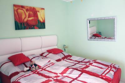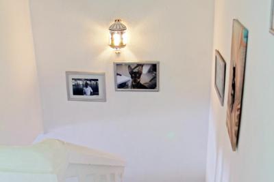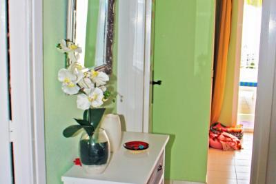 Op de bovenverdieping is er een grote slaapkamer met toegang tot een zonnig terras met mooi uitzicht op zee en met airconditioning, een eenpersoonsslaapkamer en een ruime badkamer met bad.