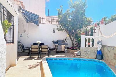 Denna fastighet består av en terrass med en pool vid ingången, ett rymligt vardagsrum med öppen spis, en matsal, ett fullt utrustat kök, ett sovrum, 2 sovrum, båda med inbyggda garderober, 2 badrum, ett av dem med eget badrum, ett stort förråd och en parkeringsplats för bil.