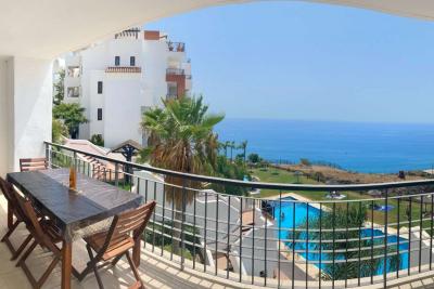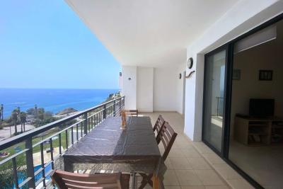 Denna fastighet har utmärkt panoramautsikt över havet och poolen från sina 1 terrasse i söder (17 m2), 2 dubbelrum med inbyggda garderober, två badrum (ett badrum), separat fullt utrustat kök och ljus öppen planlösning vardagsrum och matplats som leder ut mot solig terrass där du kan njuta av underbara solnedgångar.