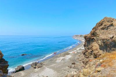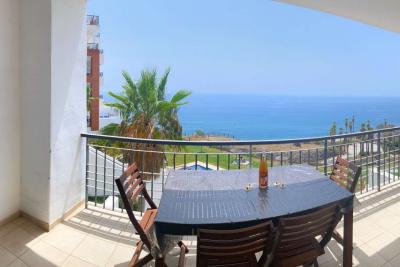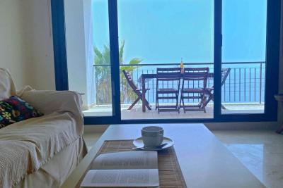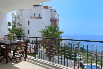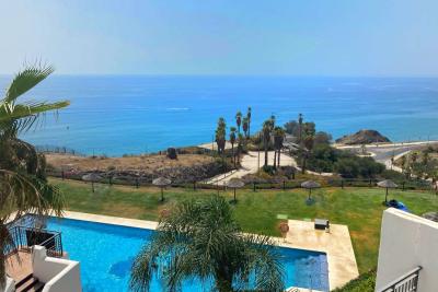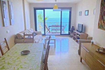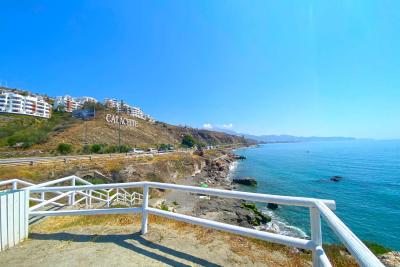 Andra rad strandlägenhet mot väster med eftermiddagssol och utmärkt utsikt över havet och Rio Chillar i Nerja och nära till...