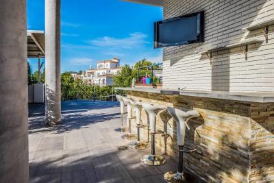 Utanför hittar du en stor grillplats, trädgård och infinity-pool. Du kan njuta av havsutsikten från poolen och från vissa sovrum.